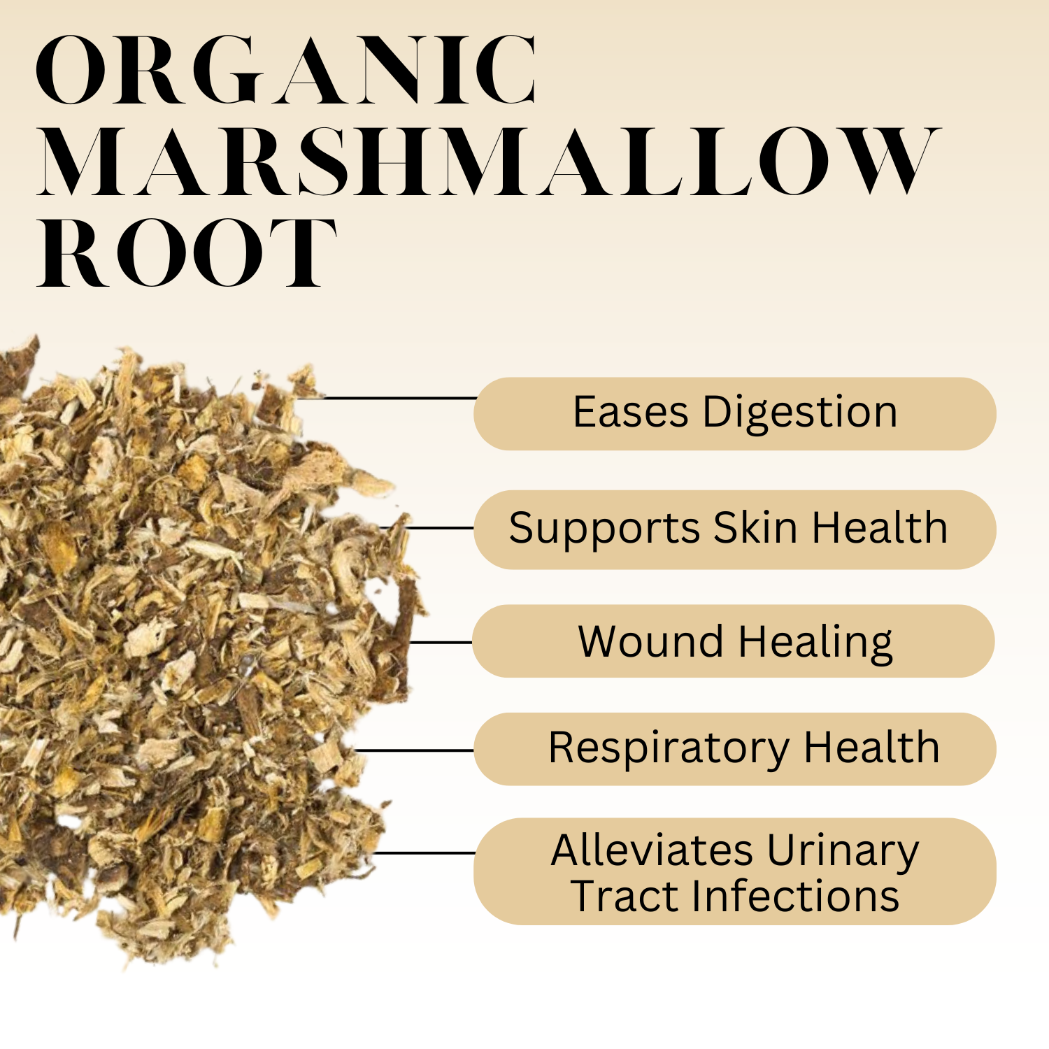 Marshmallow root, scientifically known as Althaea officinalis, is a perennial herb native to Europe, Western Asia, and Northern Africa. This plant has been used for centuries for its medicinal properties and is well-regarded in herbal medicine. The root of the marshmallow plant is particularly valued for its high mucilage content, which gives it soothing properties.