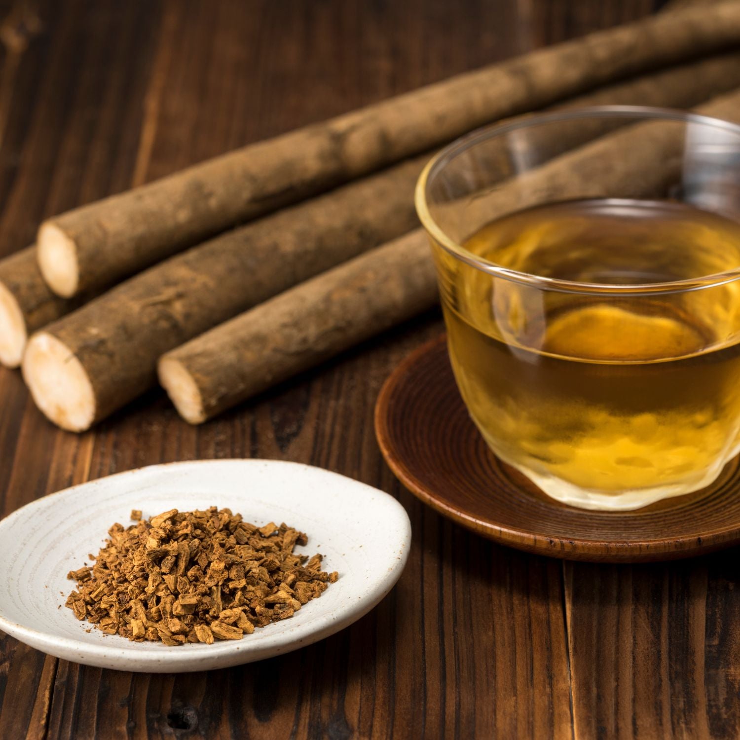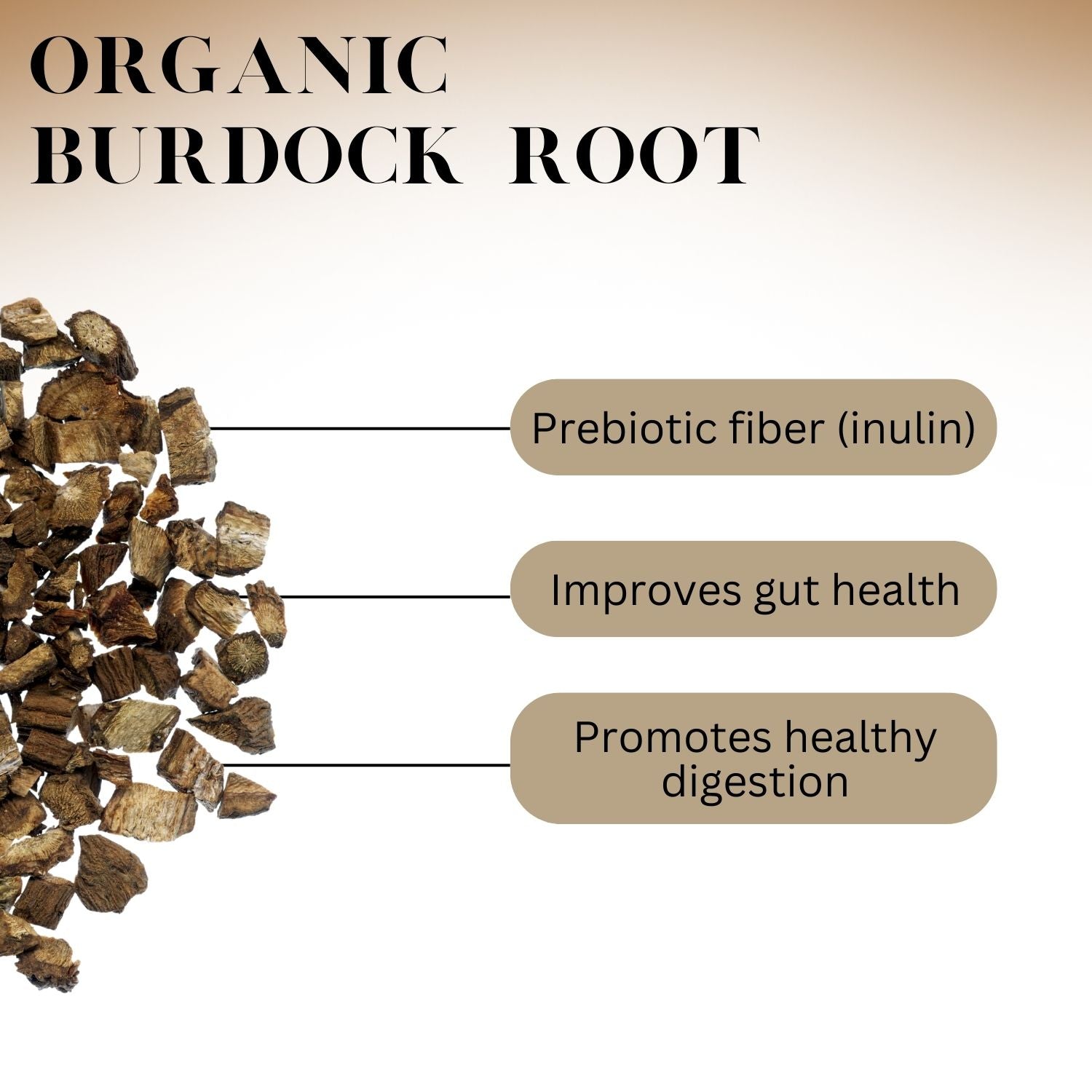 Organic Burdock Root Tea is a herbal tea made from the root of the Arctium lappa plant, commonly known as burdock. This plant is native to Europe and Asia, and its root has been used for centuries in traditional medicine for its various health benefits. The tea is known for its earthy, slightly sweet flavor with a hint of bitterness. It is often consumed for its detoxifying properties, as it is believed to help purify the blood and support liver function. As an organic product, this tea is made from burdock roots grown without the use of synthetic pesticides or fertilizers, ensuring a natural and pure brew.