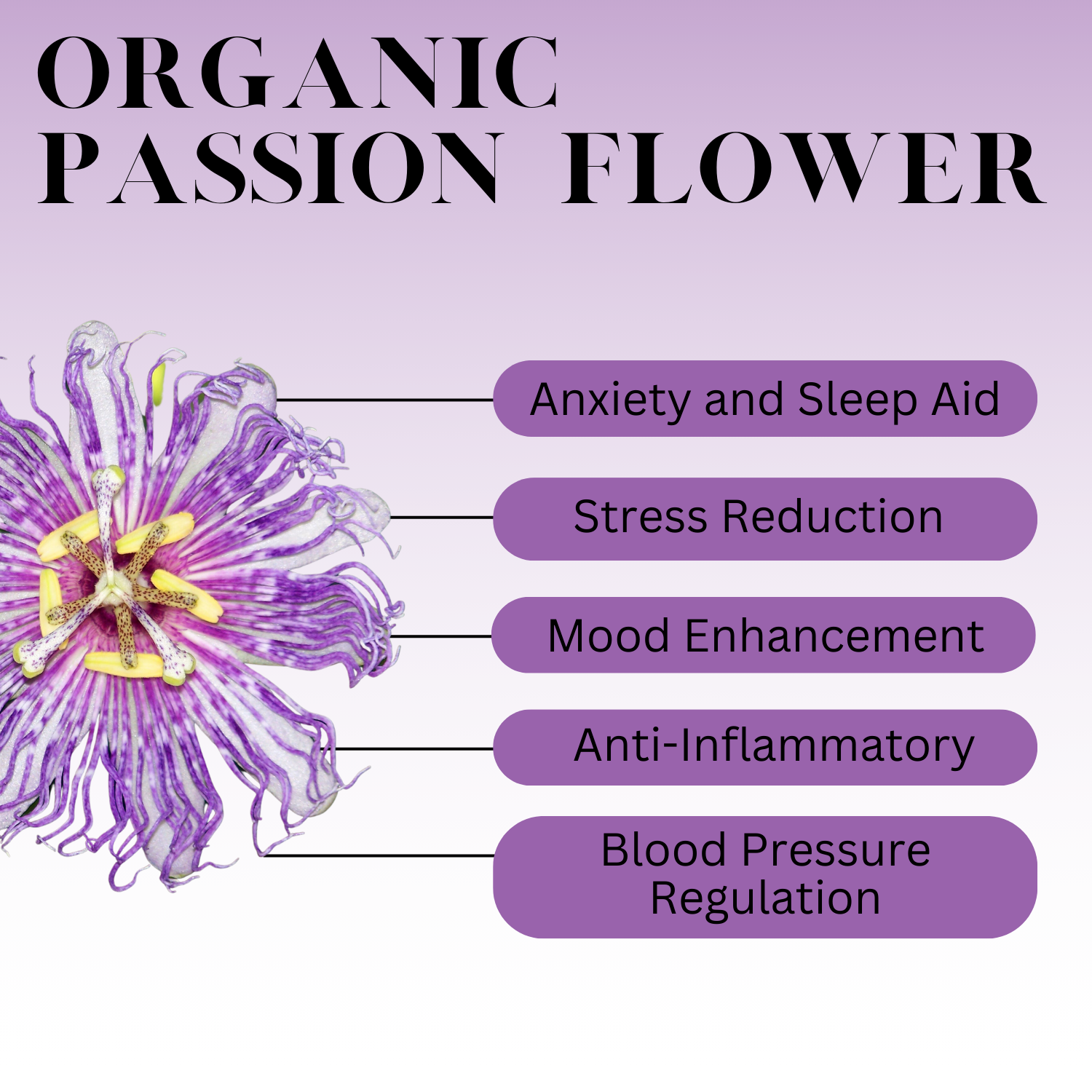 Organic passion flower is widely recognized for its ability to alleviate stress and anxiety. It works by increasing levels of gamma-aminobutyric acid (GABA) in the brain, which helps to reduce brain activity and promote relaxation.