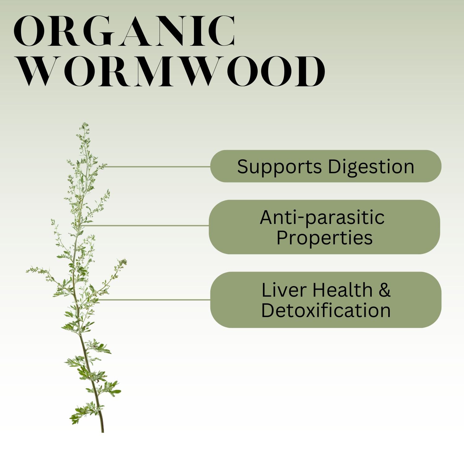 Organic Wormwood tea is a potent herbal infusion made from the leaves of the Artemisia absinthium plant. It is known for its strong, bitter taste and has been traditionally used for its digestive benefits. Organic Wormwood supports digestion by stimulating digestive enzymes and bile production, which helps break down food more effectively. In addition, it has natural properties that are valued for their potential antiparasitic effects and liver health support, aiding the detoxification process. While it may not be the most pleasant-tasting herbal tea, its wellness benefits make it a popular choice in traditional herbal remedies.